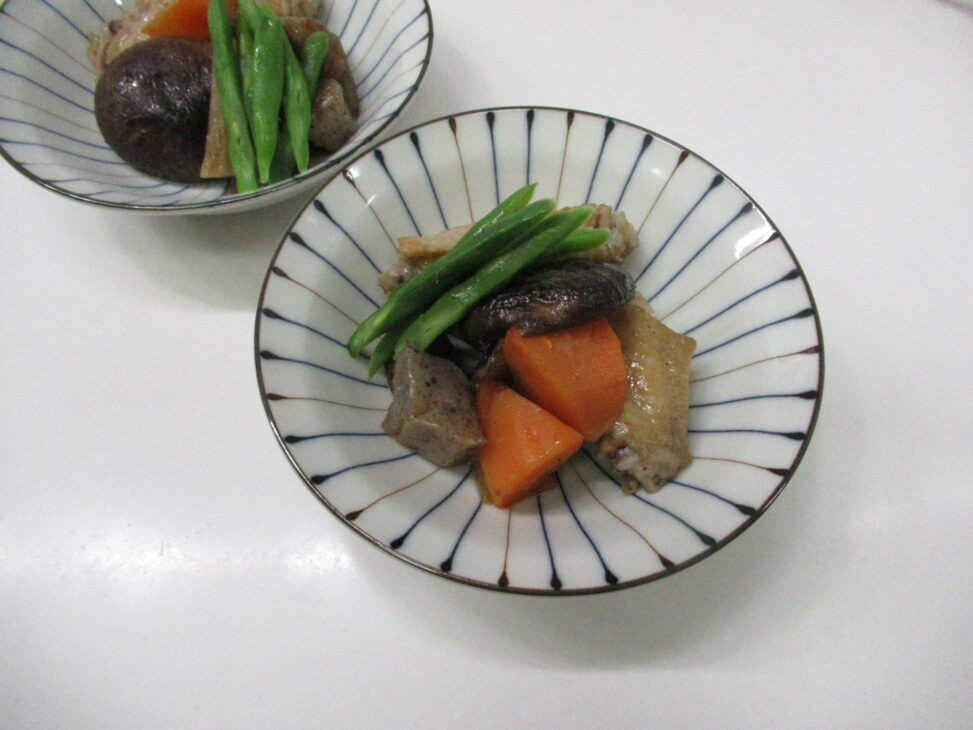 - こんにゃく、ゴボウ、レンコンは煮ても大きさは変わらないが、人参は角が取れて小さくなる。