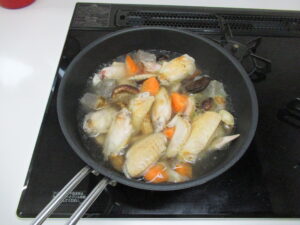- 手羽肉を使うこと、一旦鍋から上げることで鶏肉がパサパサにならない。