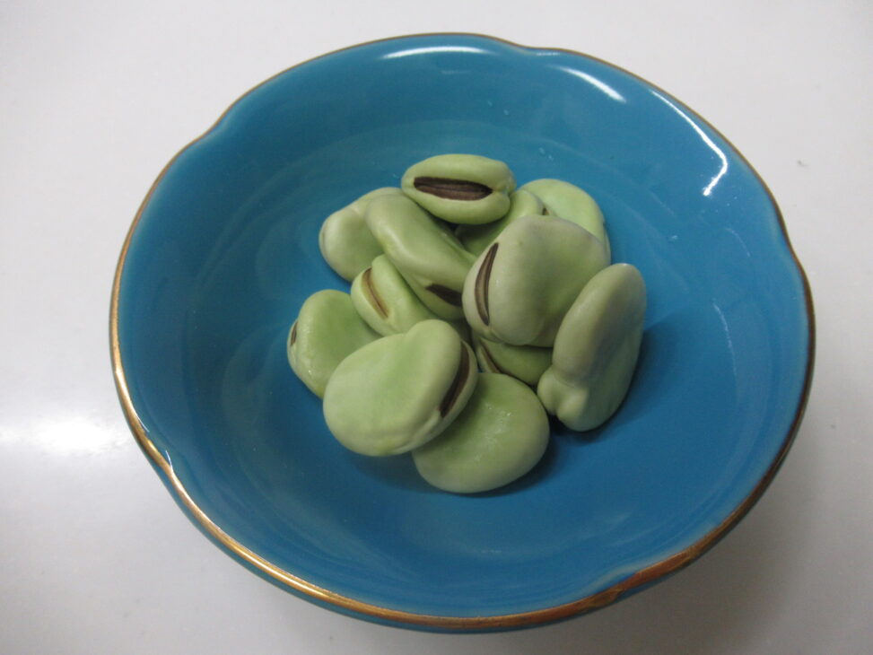 シワになりにくいそら豆 【材料】そら豆:一袋、塩:適量 【作り方】 鍋にそら豆が被るくらいの水を入れ、塩を一つまみいれて沸騰寸前まで沸かす。 鍋にそら豆を入れ、沸騰させないように注意して約3~4分茹でる。 茹で上がった豆をキッチンペーパーにとり素早く水分をふき取る。 室温までそのまま冷ます。 【こだわり】 絶対に沸騰させないこと。 茹で加減は豆の状態や大きさで異なる。 水気が豆の表面に残ると皮がふやける原因となる。 2024年5月24日 投稿先 未分類 ← 過去の投稿へ 次の投稿へ →